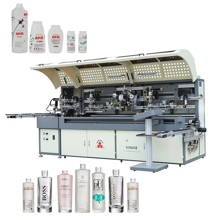 S104M Automatic screen printing machine can print different shapes of products. (Mainly round, other shapes optional)